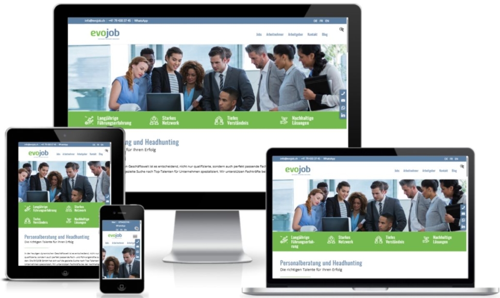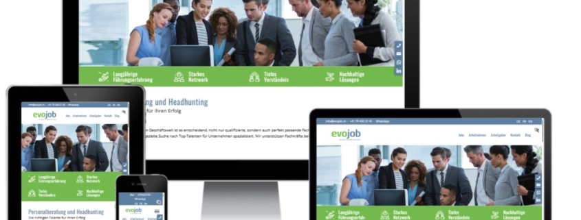 Seit mehreren Jahren betreuen wir die Webseite EVOJOB von Martin Zenklusen, Personalberater, mit Anpassungen und Aktualisierungen an der Website. Die Website wurde von einer anderen Agentur ausgearbeitet. Da diese schon in die Jahre gekommen ist und der Kunde neue Anforderungen hatte, wurde ein Redesign und Überarbeitung der Inhalte vorgenommen, aber die Grundstruktur beibehalten.